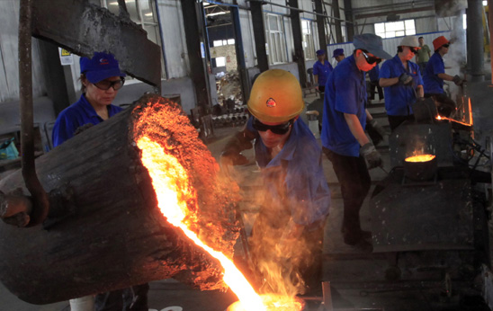 8月9日,當(dāng)天的最高氣溫34度。澤州縣巴公裝備制造工業(yè)園里,鑄造車(chē)間的工人們頂著近40度的高溫在認(rèn)真工作。 立足產(chǎn)業(yè)基礎(chǔ)和區(qū)位條件,主攻資源深加工轉(zhuǎn)化,狠抓冶鑄及裝備制造、現(xiàn)代煤化工等產(chǎn)業(yè)鏈條的培育,使?jié)芍菘h成為全市有煤縣中非煤產(chǎn)業(yè)比重最高的縣,非煤產(chǎn)業(yè)高達(dá)60%。但今年以來(lái),由于受?chē)?guó)內(nèi)外經(jīng)濟(jì)形勢(shì)的影響,特別是受煤炭、鋼鐵、鑄造等產(chǎn)業(yè)市場(chǎng)需求不旺,價(jià)格下滑的影響,澤州縣主要產(chǎn)品總體上處于“雙降”趨勢(shì),即產(chǎn)量?jī)r(jià)格雙下降。上半年,全縣工業(yè)增加值增長(zhǎng)6.2%,排名全市倒數(shù)第二。影響因素有四個(gè)方面:一是煤礦生產(chǎn)不正常,目前僅有天戶(hù)煤業(yè)、西成莊煤業(yè)等2家煤礦生產(chǎn),其他或處于停產(chǎn)狀態(tài),或轉(zhuǎn)入基建礦井,1-6月份影響原煤產(chǎn)量200萬(wàn)噸,影響工業(yè)增加值8億元;二是晉鋼集團(tuán)由于環(huán)境趨緊硬約束停產(chǎn),6月下旬組織恢復(fù)生產(chǎn),5、6月份影響鋼鐵產(chǎn)量40萬(wàn)噸,影響工業(yè)增加值3億元;三是化肥市場(chǎng)4月份以來(lái)持續(xù)下滑,價(jià)格下降(1700元/噸,同比下降500元/噸左右,且銷(xiāo)售不暢),需求萎縮,1—6月份產(chǎn)量同比有所下降;四是鑄管件市場(chǎng)今年以來(lái)持續(xù)需求不振,同時(shí)價(jià)格下降,產(chǎn)量下滑。